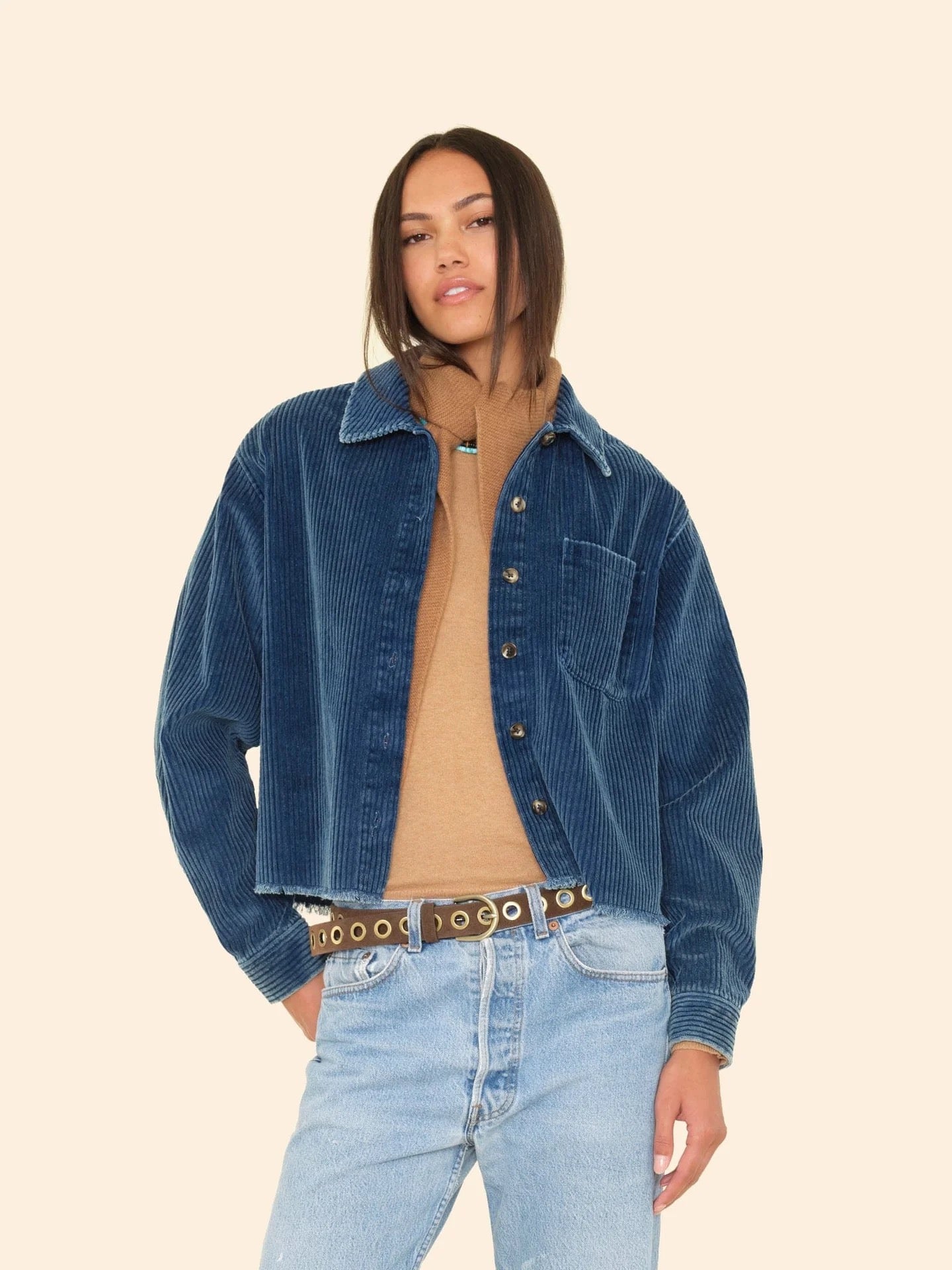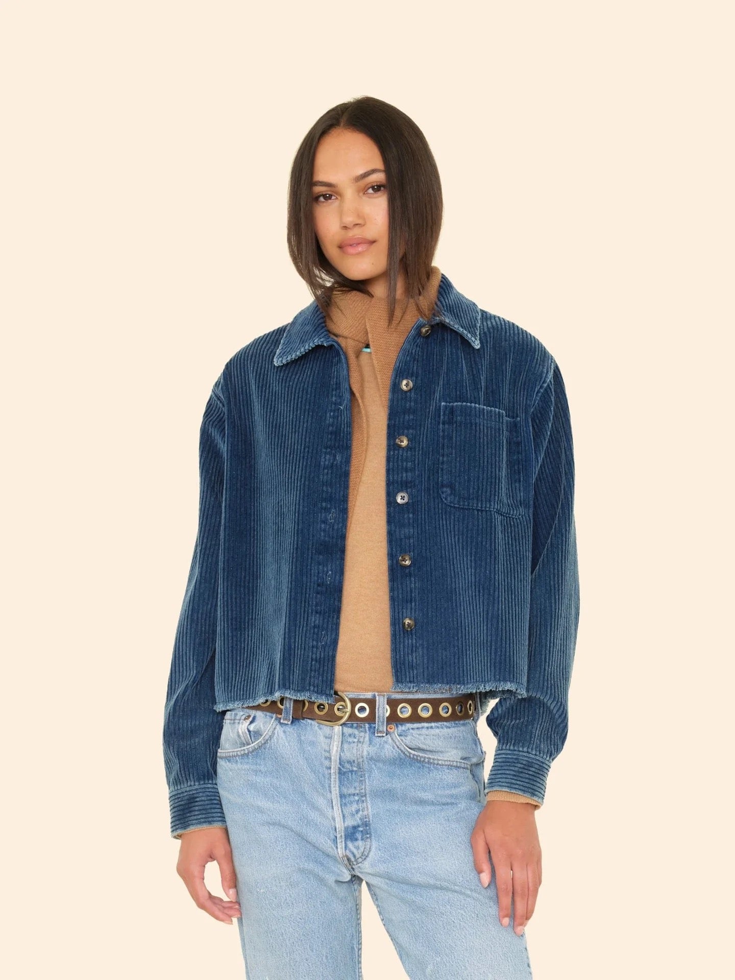 Cut the Cord. Ben is new this season in our wide-wale corduroy. This slightly cropped shirt is lined in floral printed cotton lawn and features a faux horn button-front, left chest pocket, and raw edge hem.