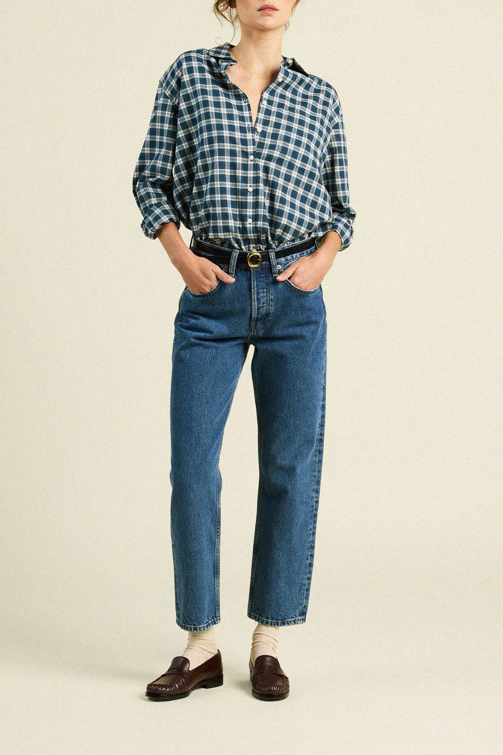 The Blake oversized boyfriend shirt is a button-down meant to live in your wardrobe for years. It truly gets better with each wear, growing softer every wash. This shirt has an oversized boyfriend fit completed with antique white buttons and a single chest pocket. Made from our cotton and shown here in Maritime Plaid.