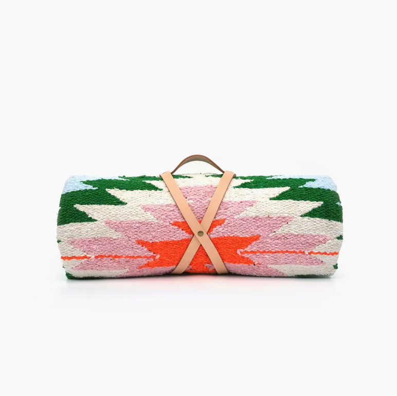 Our Tierra Collection blankets are perfect for hanging out at the park, or beach, or even keeping warm around a campfire. This collection is perfect for beach lounging or keeping warm around a campfire. They are big enough for a 2 - 4 person picnic and roll up in thirds for easy transport. The blankets are designed by us at our home base in San Francisco and hand woven in Mexico by skilled artisans. Our leather straps are hand-made by us out of vegetable-tanned leather that ages nicely with use.