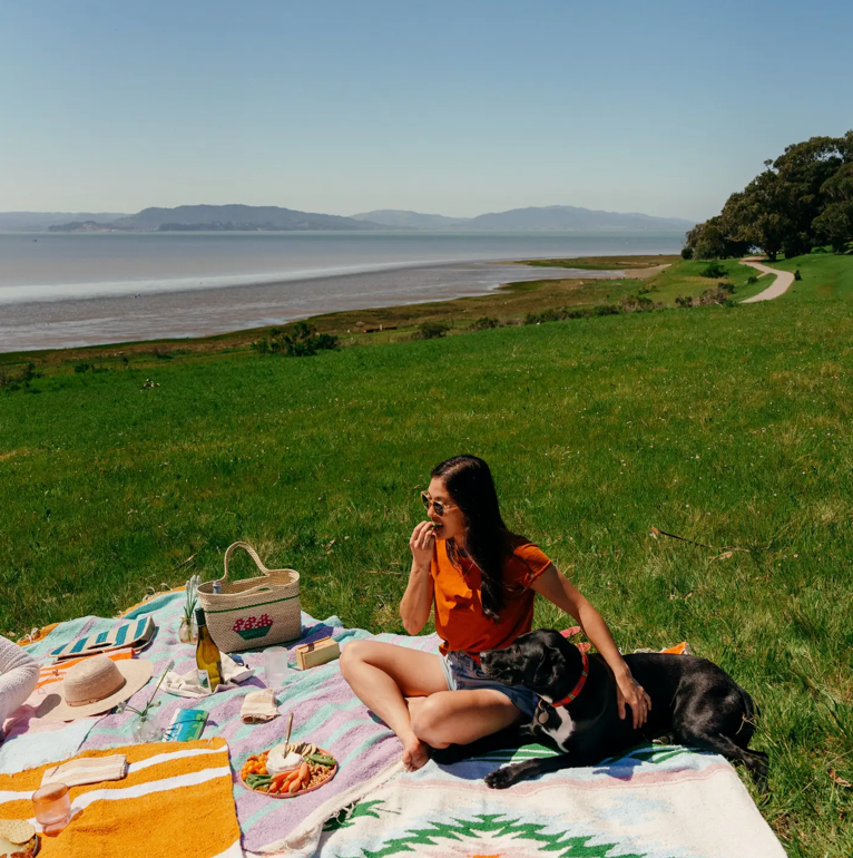 Our lively Vuelta blankets, adorned in grassy green, pink, and bright orange tones, evoke the spirited atmosphere of a sun-drenched park hang. Dar una vuelta, meaning to go on a walk, drive, or pedal, fit the joyful mood of these vibrant blankets. The lively colors infuse gatherings, indoors or out, with a radiant burst of energy and delight.