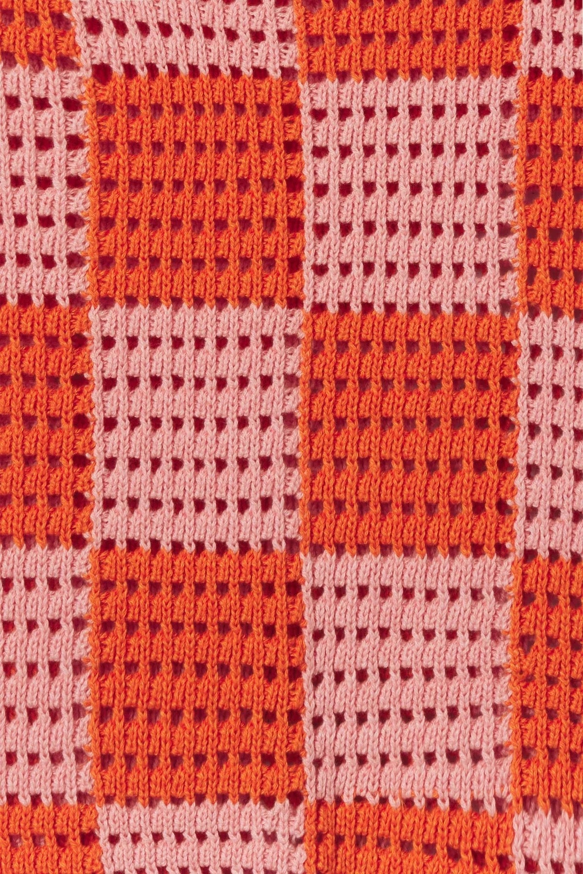 Our Bree Sweater Tank is a sleeveless, knit textured-sweater in a playful checker pattern. Signature ribbed neckline and bottom waistband with a slightly boxy and cropped fit. Shown here in Pink/Orange Check and made from our soft cotton.