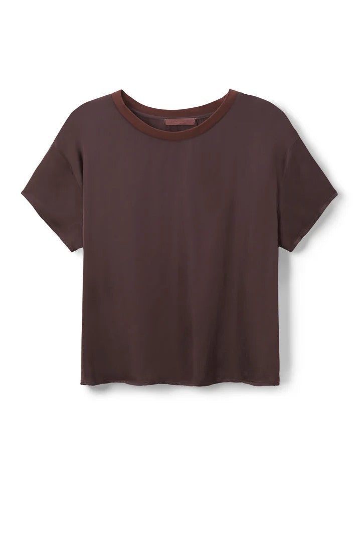 not just a tee. meet delphine; a classic crewneck tee shirt cut in whisper soft satin. just what you’ve been wanting this holiday.
