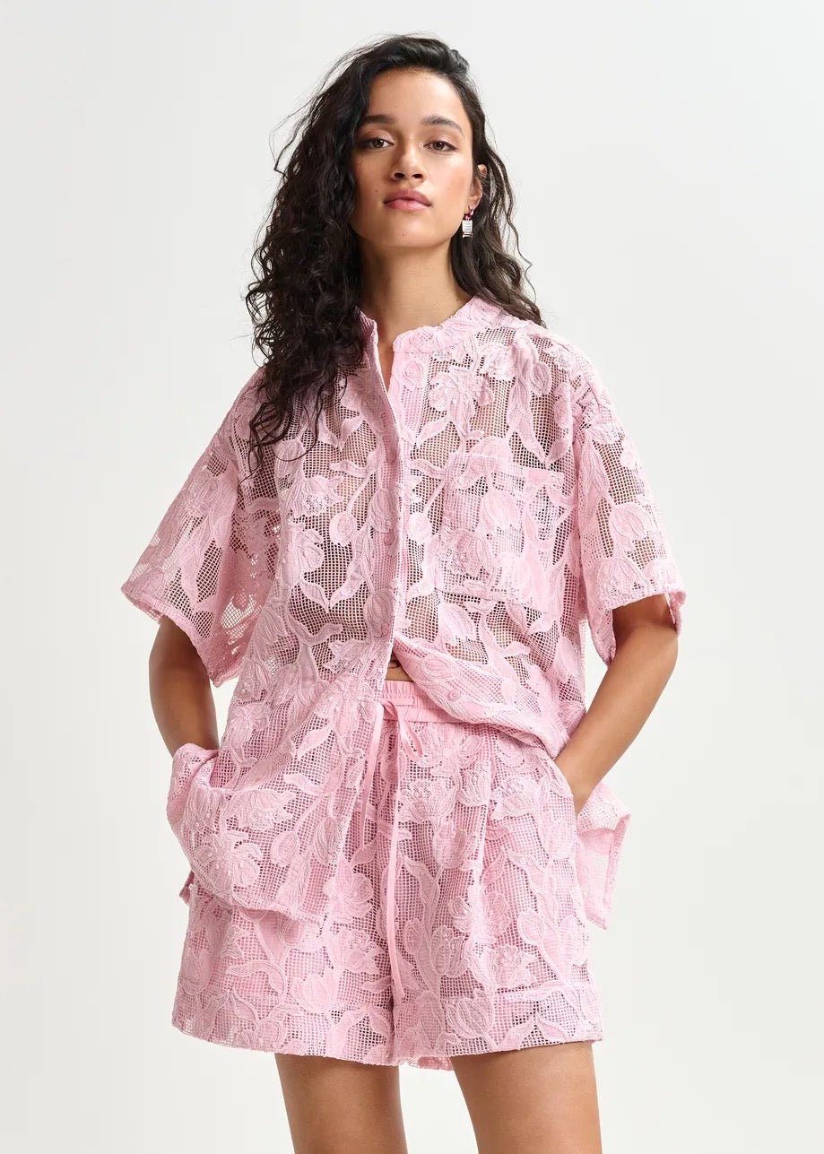 Cut from intricately woven floral lace, these shorts are designed in a wide-leg silhouette for an effortlessly elegant look. The fully laced design adds a delicate, refined touch, while the elasticated waistband ensures a comfortable yet flattering fit.