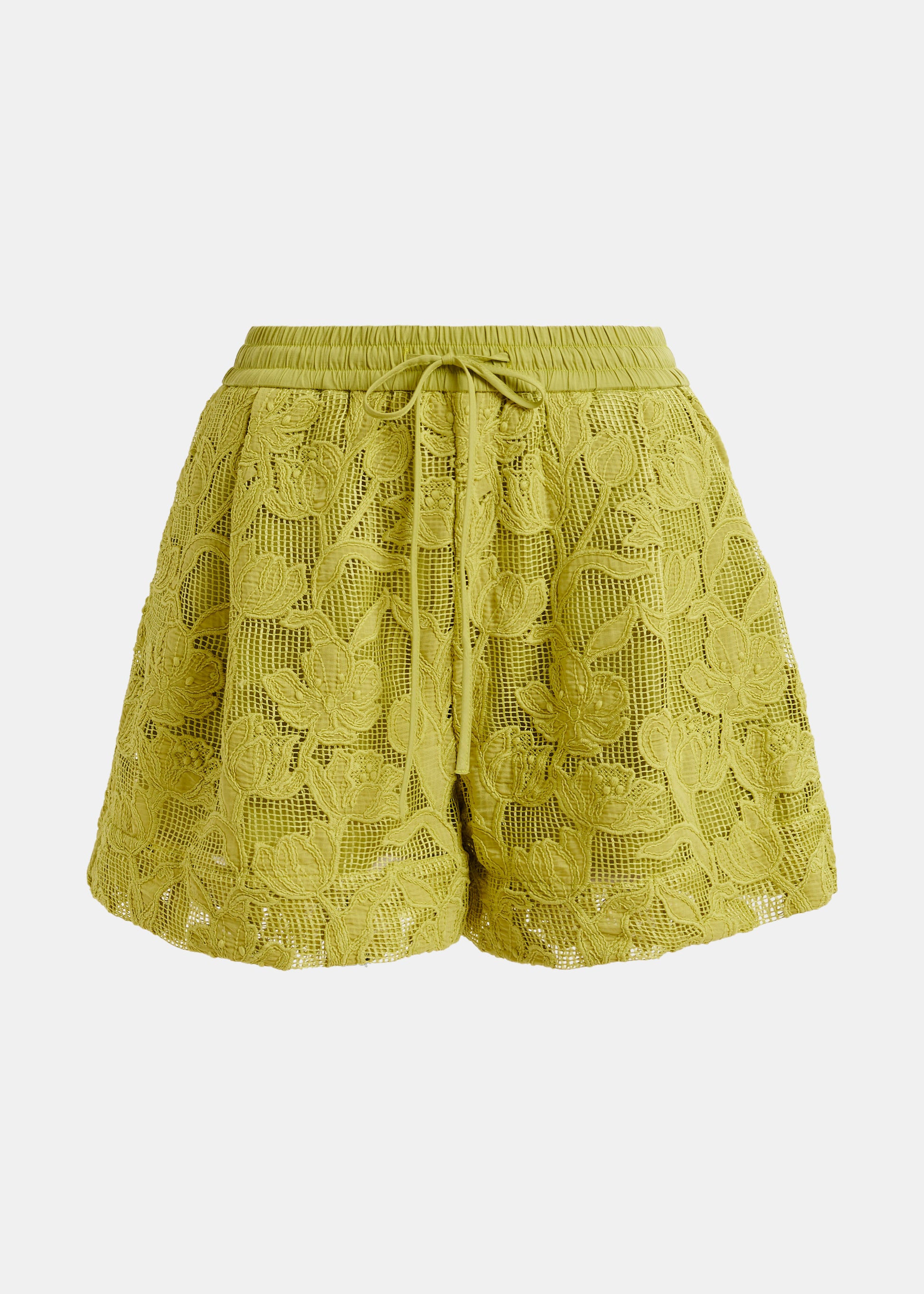Cut from intricately woven floral lace, these shorts are designed in a wide-leg silhouette for an effortlessly elegant look. The fully laced design adds a delicate, refined touch, while the elasticated waistband ensures a comfortable yet flattering fit.