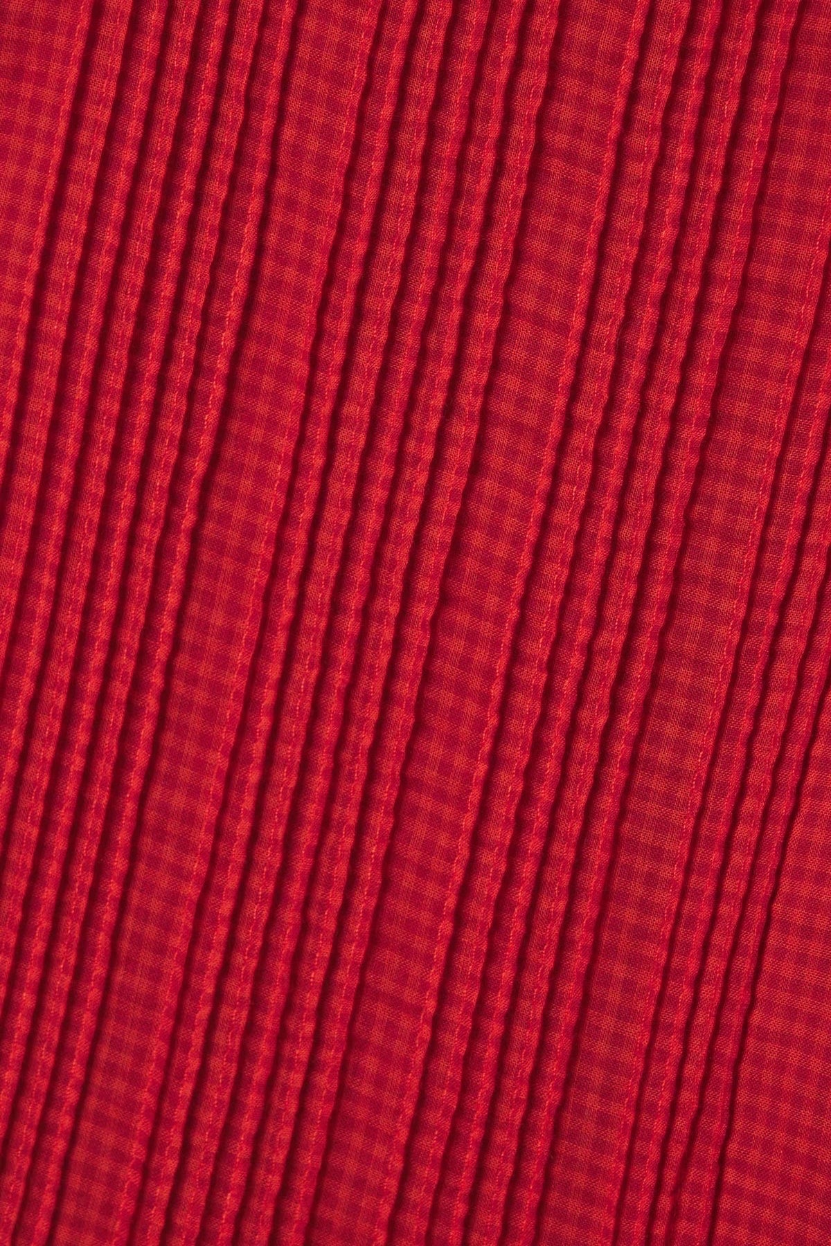 The Kinsley Blouse is a pintuck blouse with long sleeves, a rounded collar with small ruffled trim and a slim fit. Light weight and perfect for layering year-round. Shown here in Crimson Check and made from our soft cotton.
