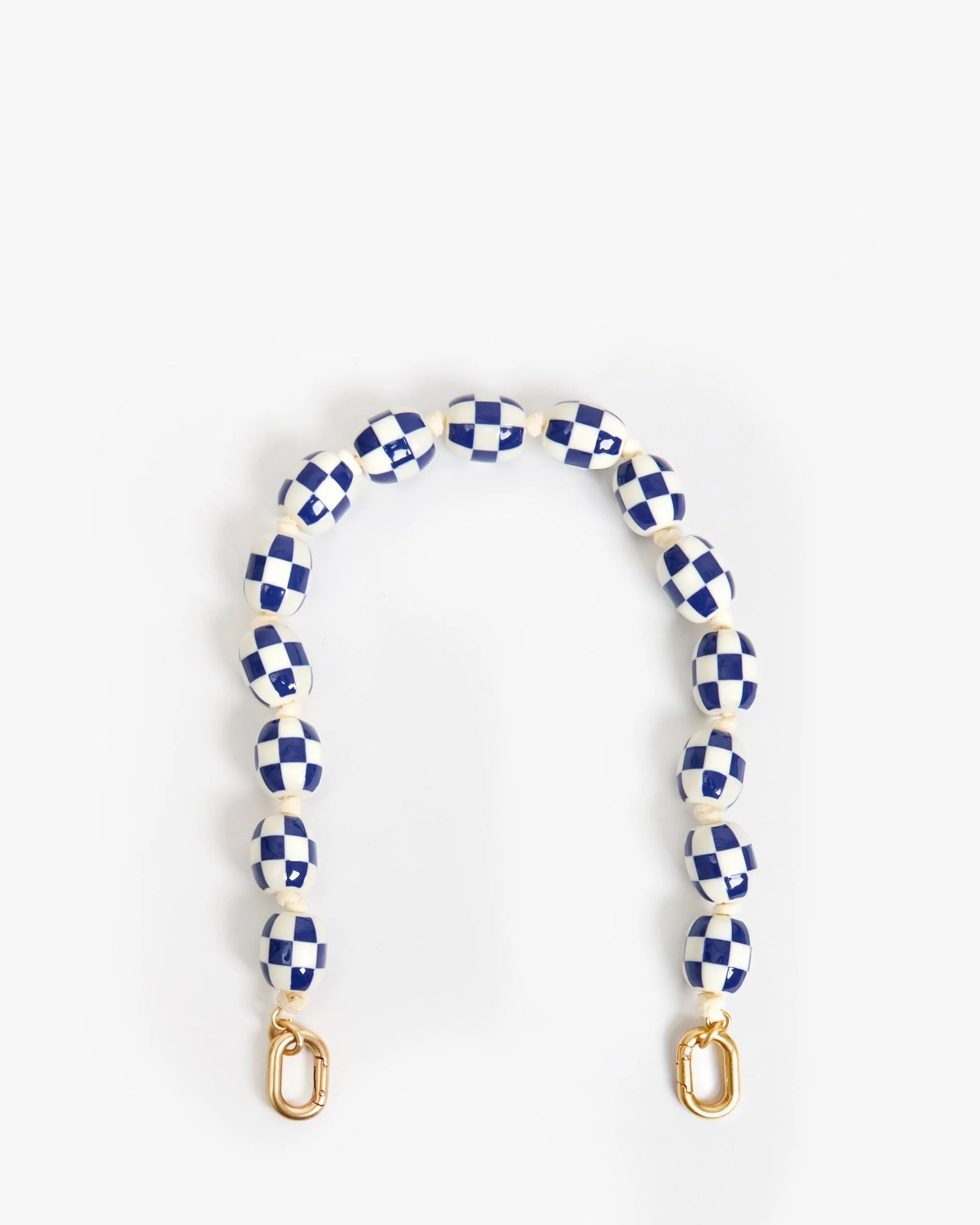Materials: Resin beads w/ hand painted enamel, poly cord, brass
