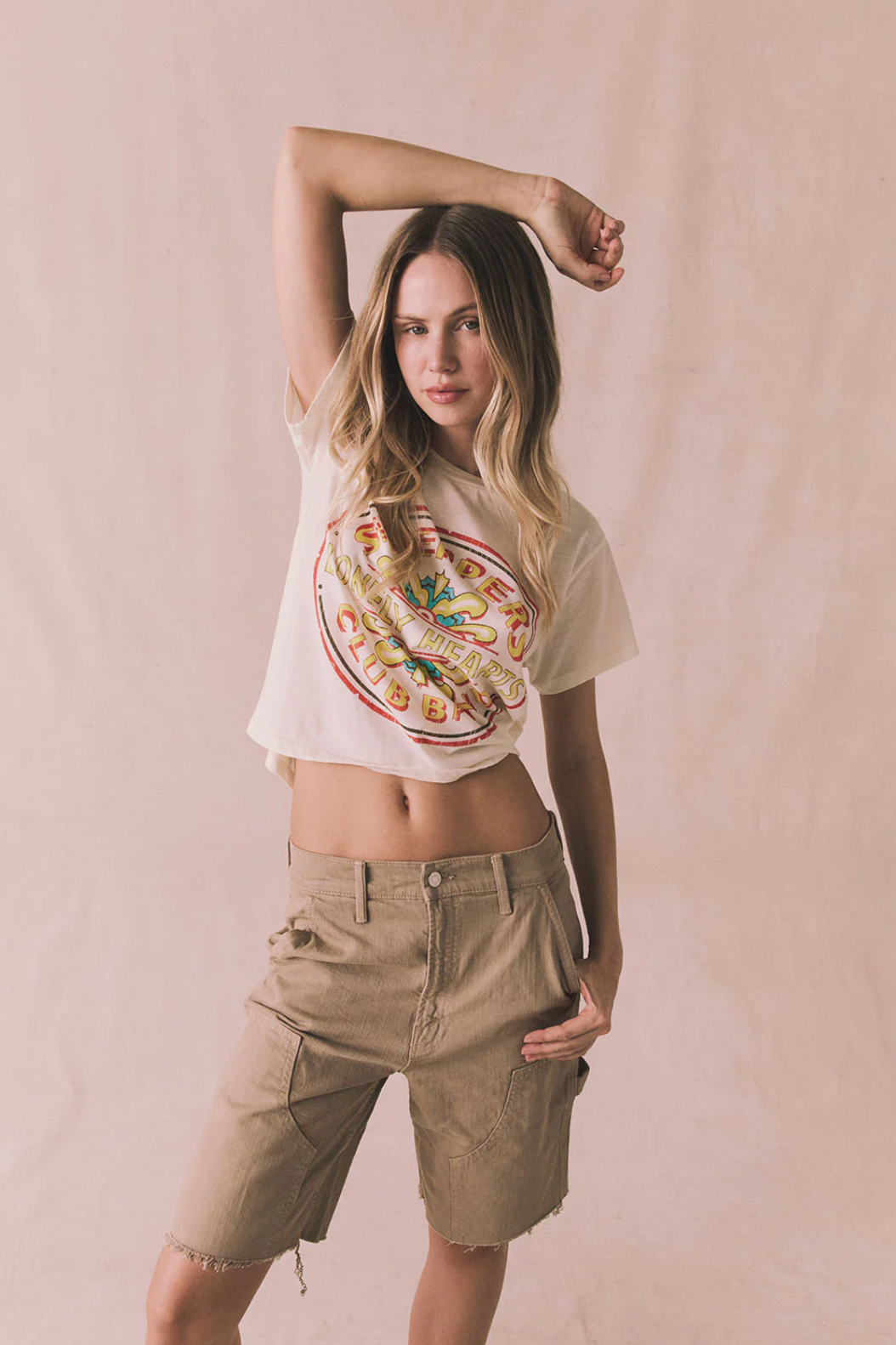 The swinging 60s starry white graphic tee features the iconic Sargent Pepper's Lonely Heart's Club Band logo--the perfect way to rock your style.